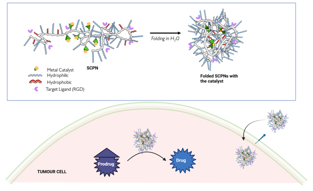 I pursued my BS-MS Integrated Dual Degree at the Indian Institute of Science Education and Research (IISER), Thiruvananthapuram, India, where I conducted my major thesis on the synthesis of chiral porphyrin cages for selective host-guest interactions under the supervision of Dr. Soumen De. Alongside this, I completed a minor project in biology under Dr. V. Stalin Raj, where I worked on fluorescent labelling of soluble ACE2 proteins for live cell imaging. Following my master’s, I joined the Eindhoven University of Technology (TU/e) as a PhD candidate in Prof. Anja Palmans’ group, within the Department of Chemistry and Chemical Engineering. My research focus on single-chain polymeric nanoparticles (SCPNs) for targeted bio-orthogonal catalysis in 3D cell models. We aim to develop catalytically active SCPNs with target ligands that are capable of converting inactive prodrugs into toxic anti-cancer agents selectively at tumour sites to reduce side effects.