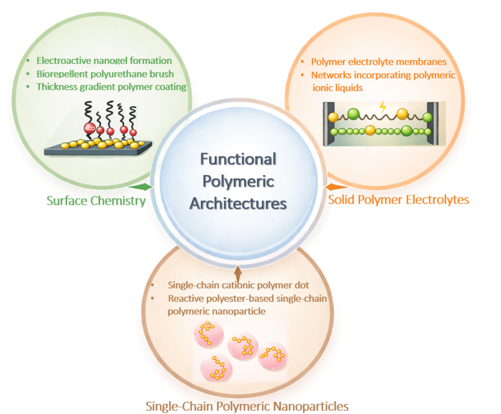 I am a polymer chemist working on functional polymer architectures to translate molecular design into function. My work focuses on soft materials on solid substrates through surface chemistry, solid polymer electrolytes, and single-chain polymeric nanoparticles (SCPNs) for sensing platforms, Li-ion batteries, and biomedical applications. During my PhD at İzmir Institute of Technology, I developed surface-assisted polymerization strategies, including an isocyanate–gold interaction-based approach to construct a polyurethane brush, along with polythiophene nanowires on a gold substrate, electroactive nanogels, and gradient polymer coatings. As a visiting researcher at Friedrich-Alexander-Universität Erlangen-Nürnberg, I investigated the self-assembly of porphyrin and cationic polythiophene systems. At the Leibniz Institute of Polymer Research Dresden, I expanded my work into solid polymer electrolytes based on acrylate-derived polymeric ionic liquids for lithium-ion batteries, focusing on the interplay between ionic conductivity and mechanical stability. Currently, I develop modular post-functionalized polyesters as a degradable and traceable SCPN platform for drug delivery at Eindhoven University of Technology.